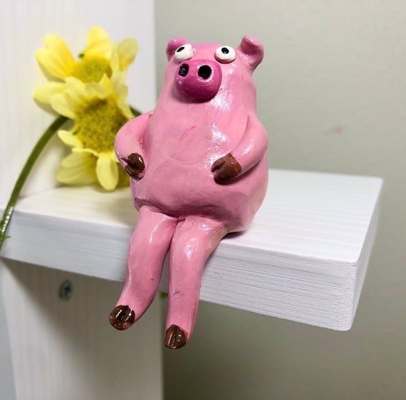 Handmade Polymer Clay Sitting Pink Little Chubby Pig Statue Etsy Australia